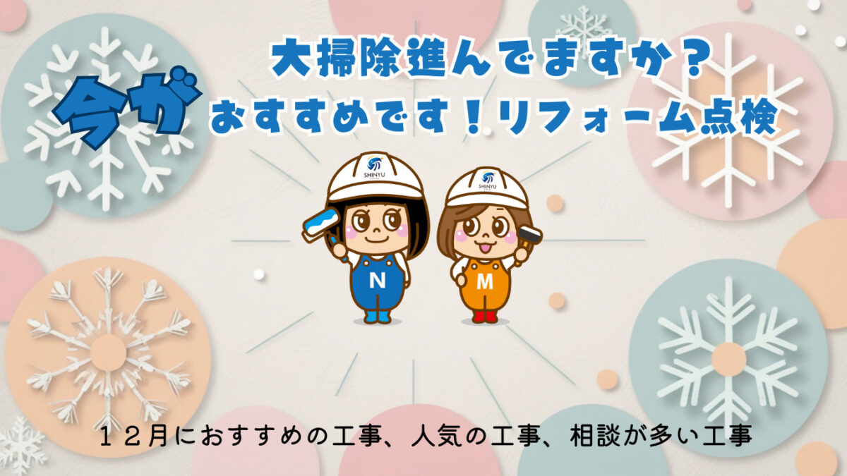寒さが本格化し、住まいの不具合が一番分かりやすくなるのが12月がメンテナンスに適した時期です!