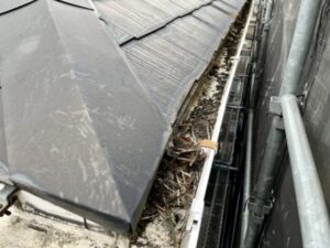 雨どいは屋根に降った雨水を集めて排水する、大切な役割を担っています。落ち葉や砂ぼこり、ゴミなどが溜まってしまうと、雨水がうまく流れずにあふれてしまい