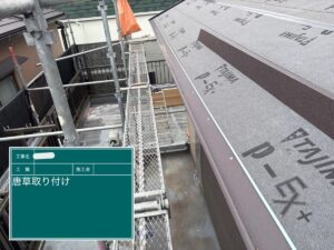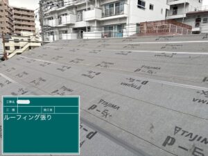 新しい屋根材を施工する前にルーフィング(防水シート)を設置します。