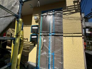 下塗りは劣化した外壁材に塗料が直接吸い込まれないよう、下地を整え、上塗り塗料の密着性を高める役割があります。