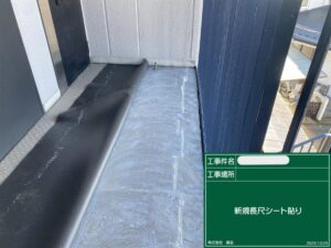 段差が出ないよう仕上げ、新規シートを貼り付けます。