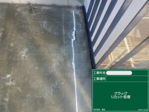 Uカット処理を行い、補修材を充填することで再発防止と下地の安定化を確保します。
