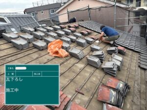 古い瓦を丁寧に取り外して撤去することで、次の屋根材を確実に施工できる状態に整えるのが目的です。