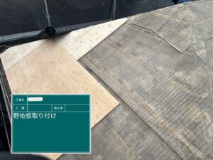 撤去後は野地板(のじいた)の状態を確認し、傷みや腐食があれば張り替え作業を行います!!