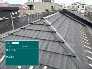 先日、葛飾区東金町にて屋根の葺き替え工事をいたしました。今回は既存の瓦降ろし作業について紹介します。