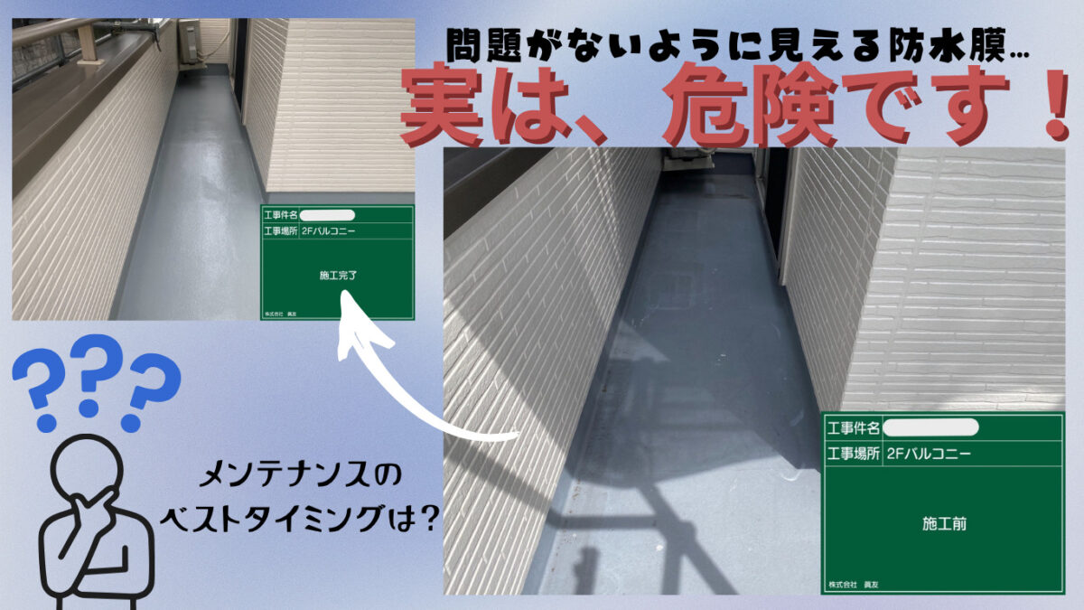 特にバルコニーや屋上は、劣化すると雨漏りに直結しやすく、室内にまで影響が出る場合もあります。