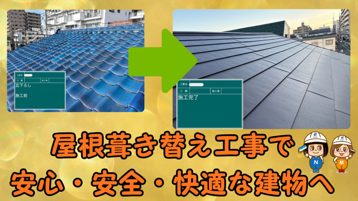 既存の屋根材を取り外して、新規で屋根材を設置する工事のことです。