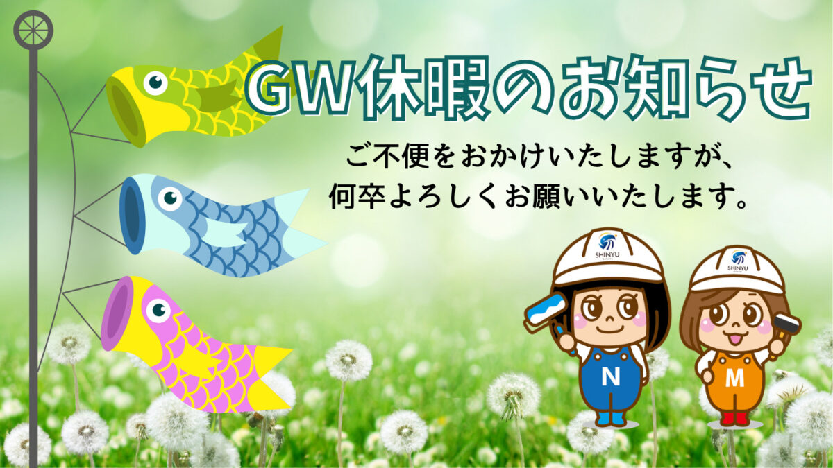 誠に勝手ながら、弊社では下記日程をゴールデンウィーク休業とさせていただきます。