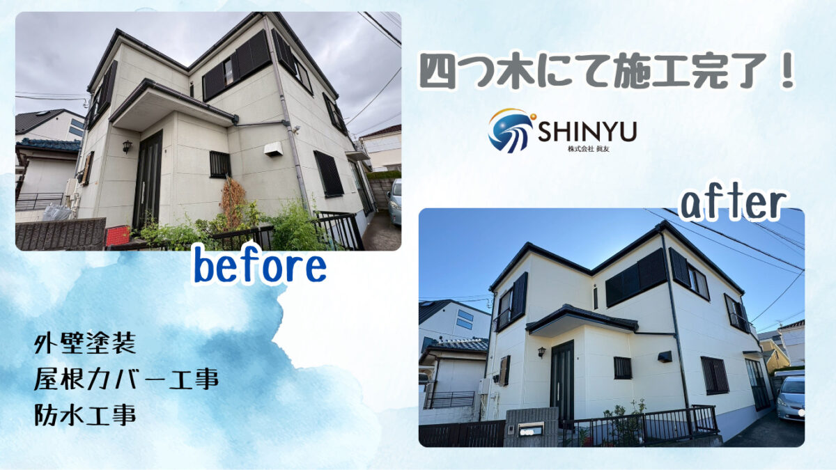 葛飾区四つ木にて外壁塗装・屋根カバー工事・防水工事